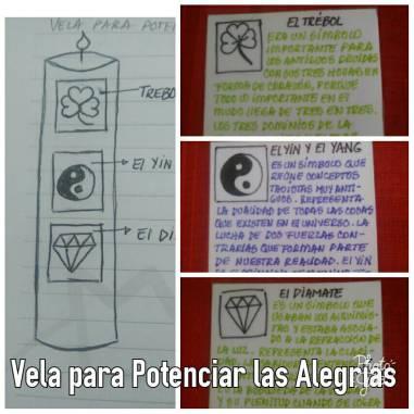 En una vela Blanca vamos a recortar tres papelito en los cuales vamos a dibujar los símbolos de: El trebol, el Yin y yang y el diamante. Estos papelitos los podemos pegar sobre la vela con un poco de cera de otra vela, y una vez encendida debemos cerrar los ojos y pensar en todo aquello que nos ha hecho feliz, y todas esas cosas o personas que nos pueden hacer feliz. Visualiza con fuerza un feliz final para tus problemas… Pero eso si, que sean factibles esas soluciones o el universo no podrá ayudarte.